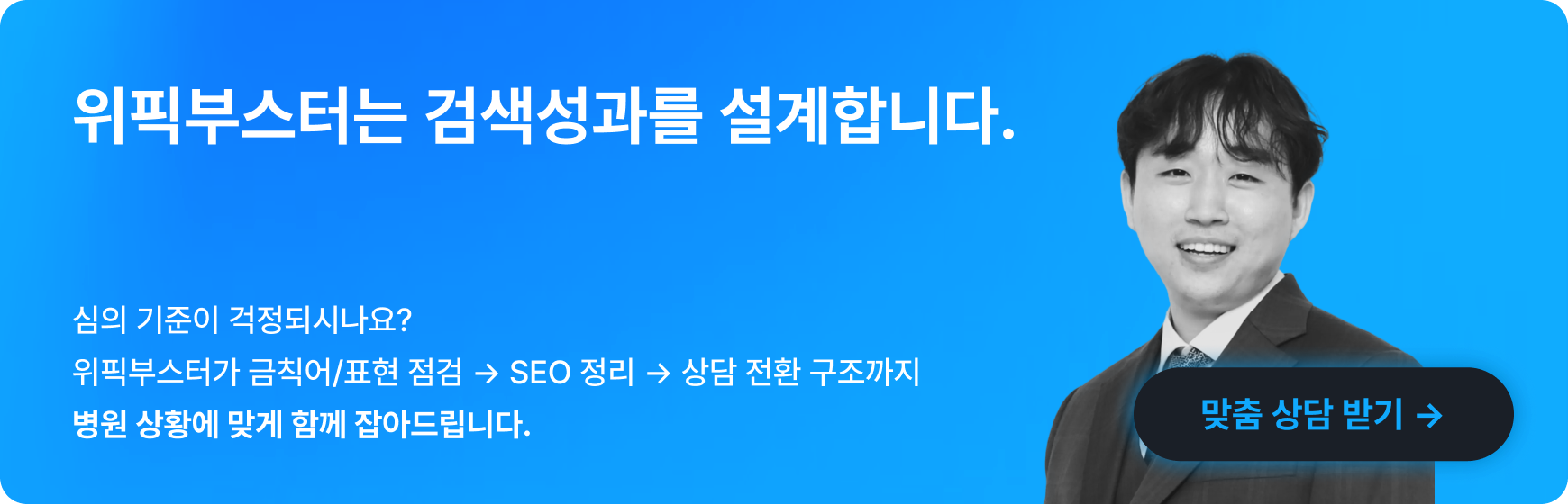 정확한 표현과 책임 있는 어휘 사용은 SEO뿐 아니라, 병원 브랜드에 대한 신뢰도를 높이는 핵심 전략이 됩니다.