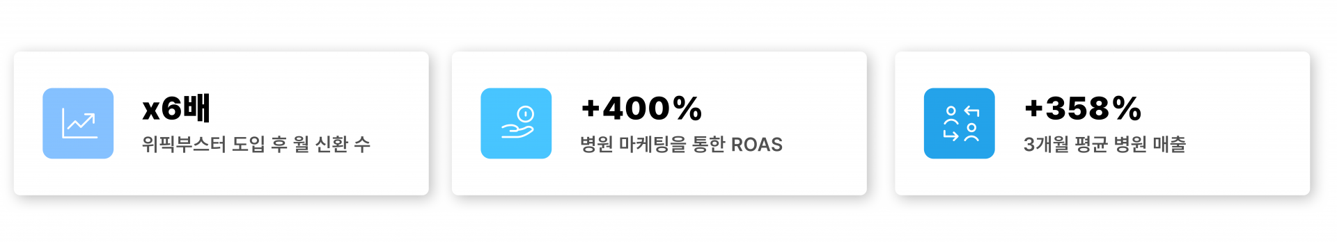 이 결과, 기존 블로그 대행사 대비 신규 환자 수가 월 6배 증가했으며, 병원 마케팅을 통한 ROAS 400%, 3개월 만에 병원 평균 매출 358% 증가라는 성과를 달성했습니다.